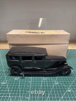 This classic wind-up toy features intricate details and craftsmanship, making it a desirable piece for toy collectors and enthusiasts. The inclusion of the original box adds to the authenticity and appeal of this antique German tin toy car.