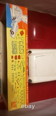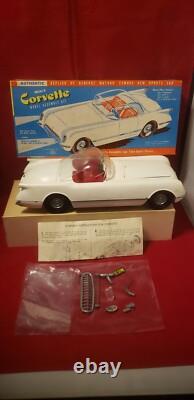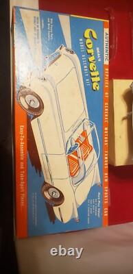 The model calls to mind the golden age of ideal craftsmanship, proudly featuring the distinct features that have made the Corvette a symbol of performance and style since its inception. With its faithful recreation of the 1953 vehicle make, this collectible is a must-have for anyone with an appreciation for automotive history and vintage model cars. Up for your consideration is a piece of timeless toy history. This piece has been in our family since new, stored with great care. The color on the box graphics is truly amazing considering it's age! It is a one owner car! I have tried to take many pictures so you can judge condition.From what I can tell there may be one windshield peg that is not there. There are numerous parts that still need to be added from someone with more knowledge then I have. It is a great piece.