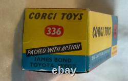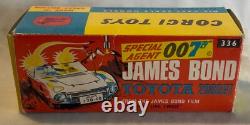 VINTAGE 1967 CORGI TOYS SPECIAL AGENT JAMES BOND 007 TOYOTA GT2000 #336 in box. Model has been renovated well and the box is a repro, missing paperwork and rockets.