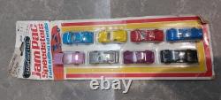 We sell wonderful set of die cast car models in original blister. For size (in CM) and conditions, please see photos.