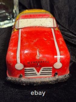 Rolls, pulls to the left while rolling. Marked "Wyandotte Toys" and "Made in USA". A must-have for collectors of vintage tin cars, prewar toys, or Americana.